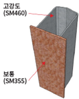 단면의 응력분포에 따른 이종강종 강판 사용
